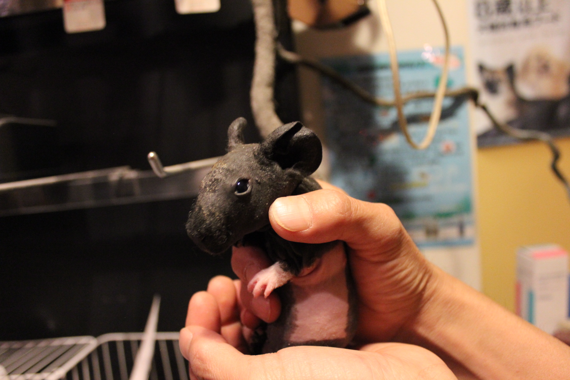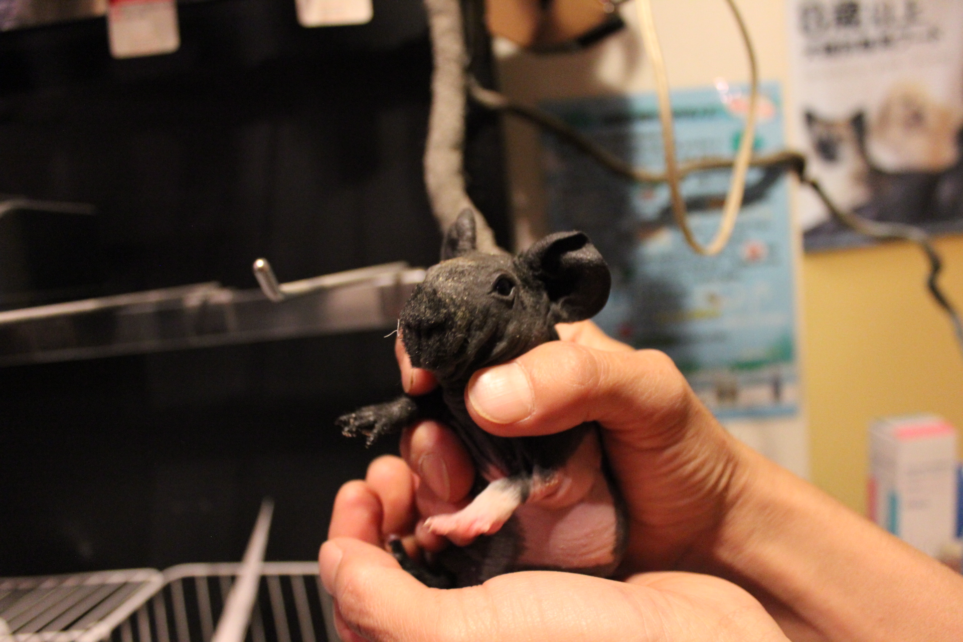 [動物名]:スキニーギニアピッグ ♀ ブラック&ホワイト ゲッ歯目テンジクネズミ科テンジクネズミ属