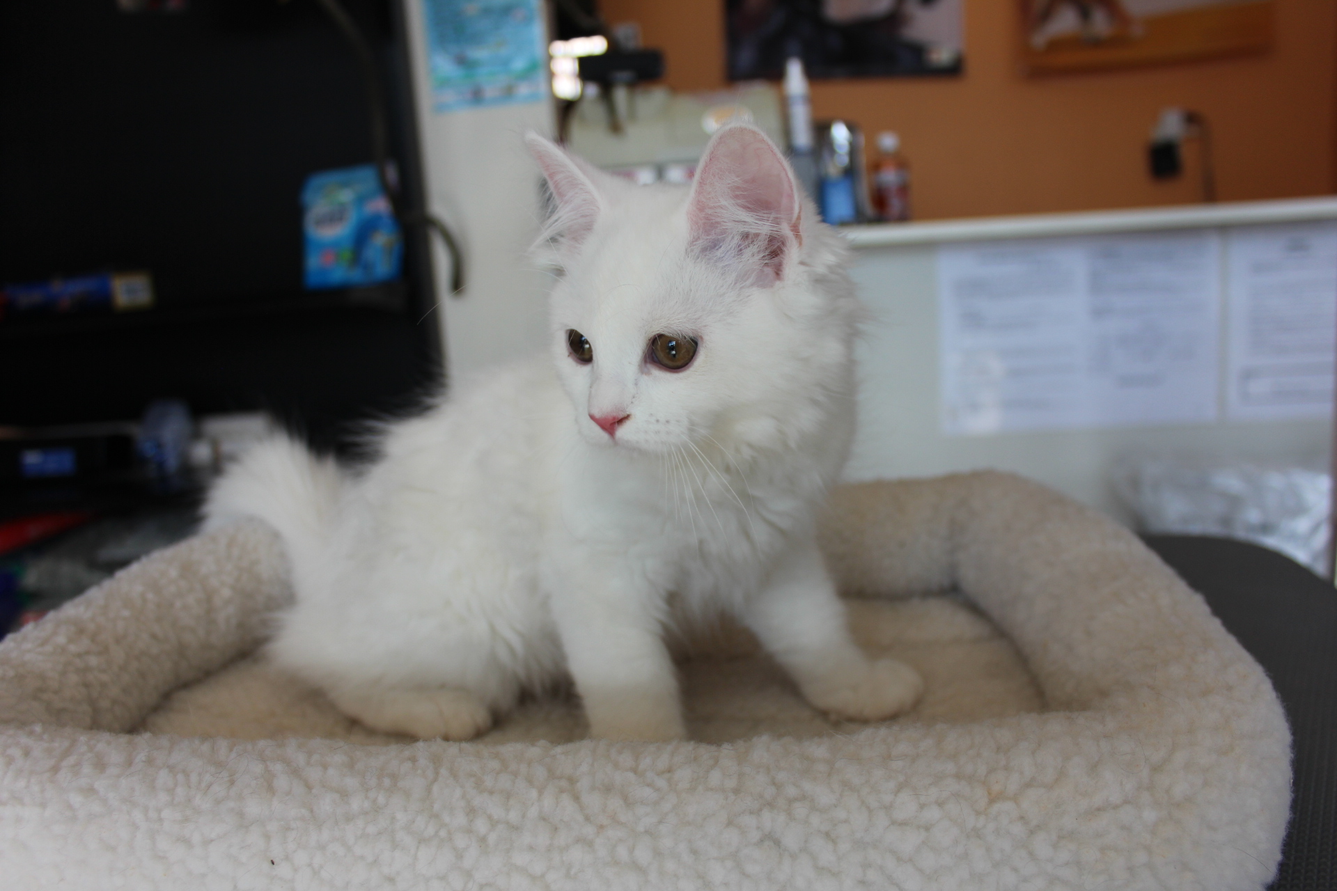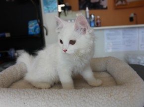 2014/03/11生まれ、マンチカンの女の子になります。カラーは、ホワイトになります。母親は、ICC babyチャンピオンになります。血統が良く、足長,長毛の可愛い女の子です。メディカルチェック、3種混合ワクチン料金別途6,500円になります。生涯大切にしてくださる新しいご家族のお迎えをお待ちいたしております。