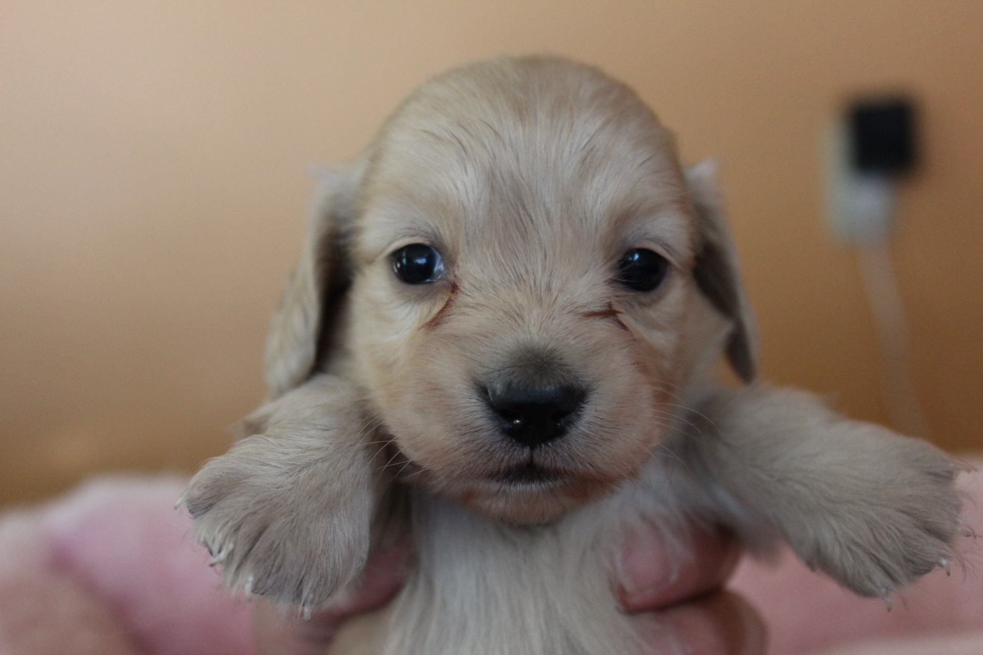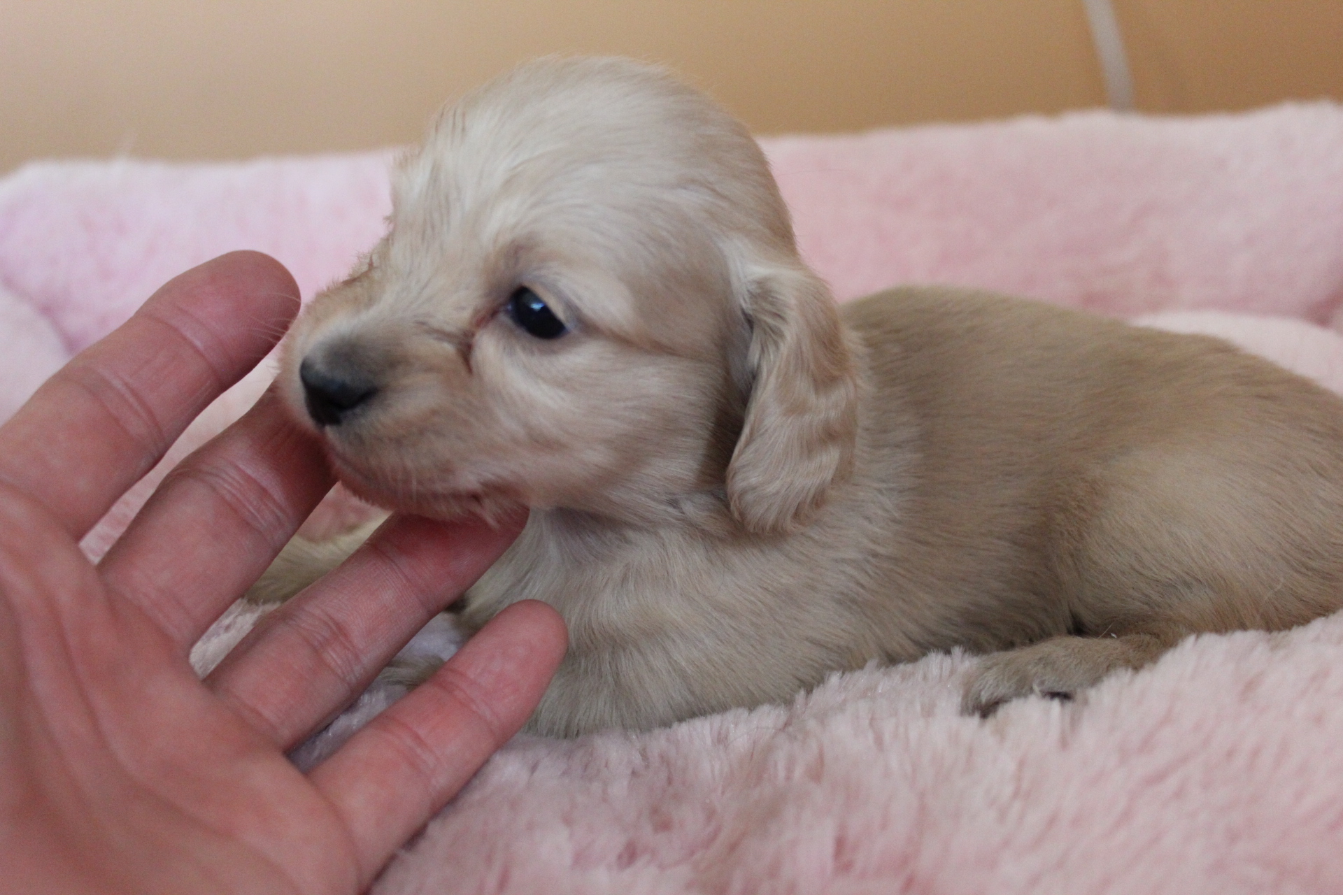2015/12/06生まれ、ミニチュアダックスの男の子になります。カラーは、クリームになります。お母さんの愛情たっぷり元気に育っております。生体価格他、消費税、ワクチン検便料金6,500円がかかります。生涯大切にしてくださる新しいご家族のお迎えをお待ちいたしております。