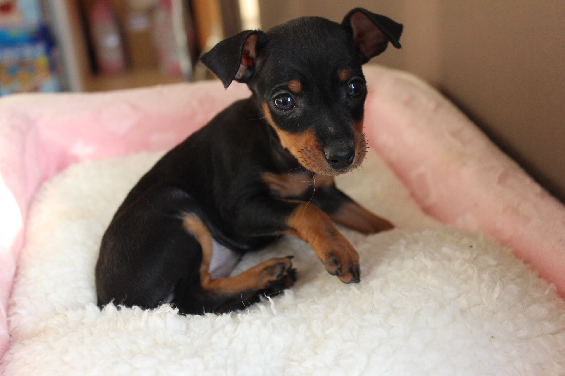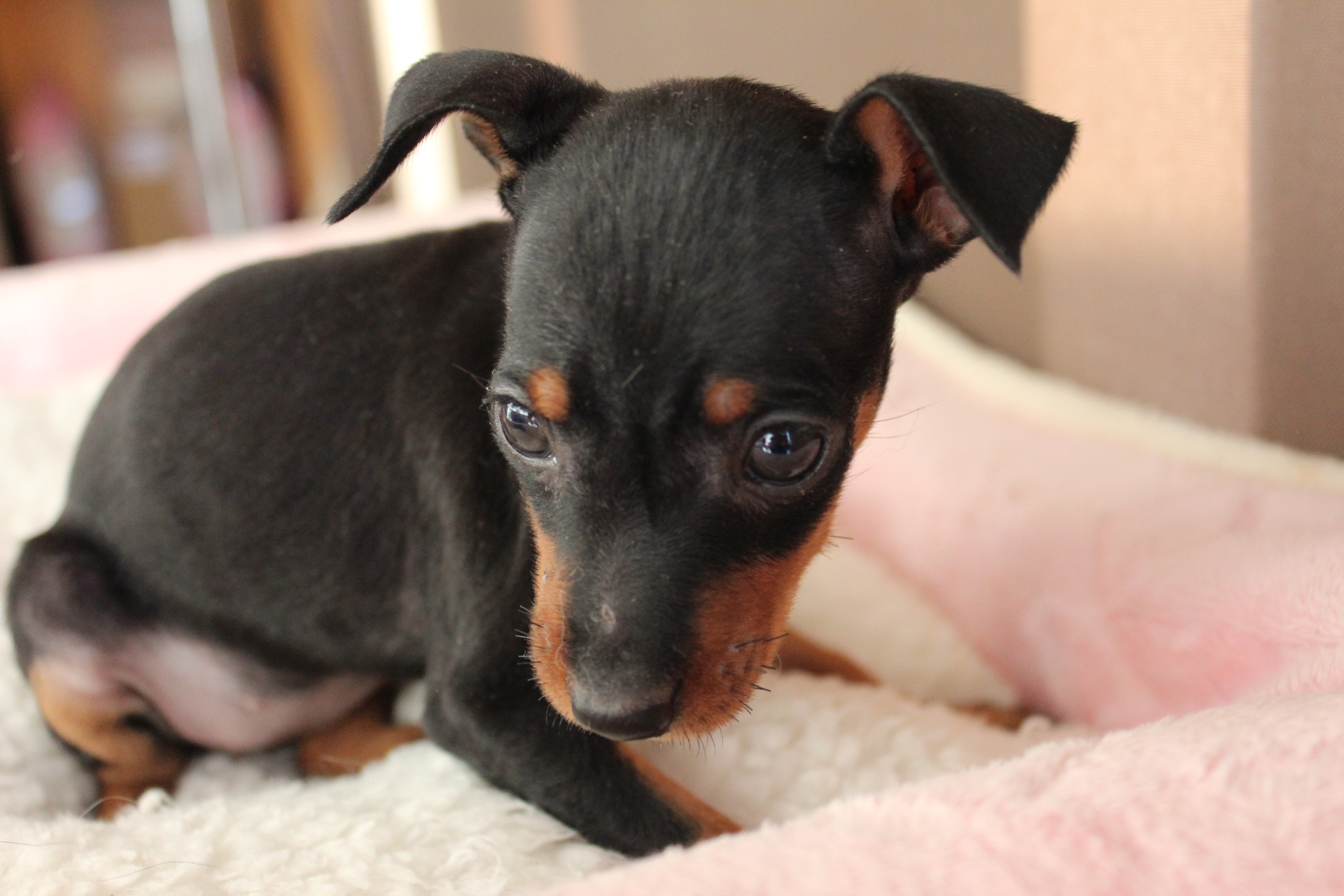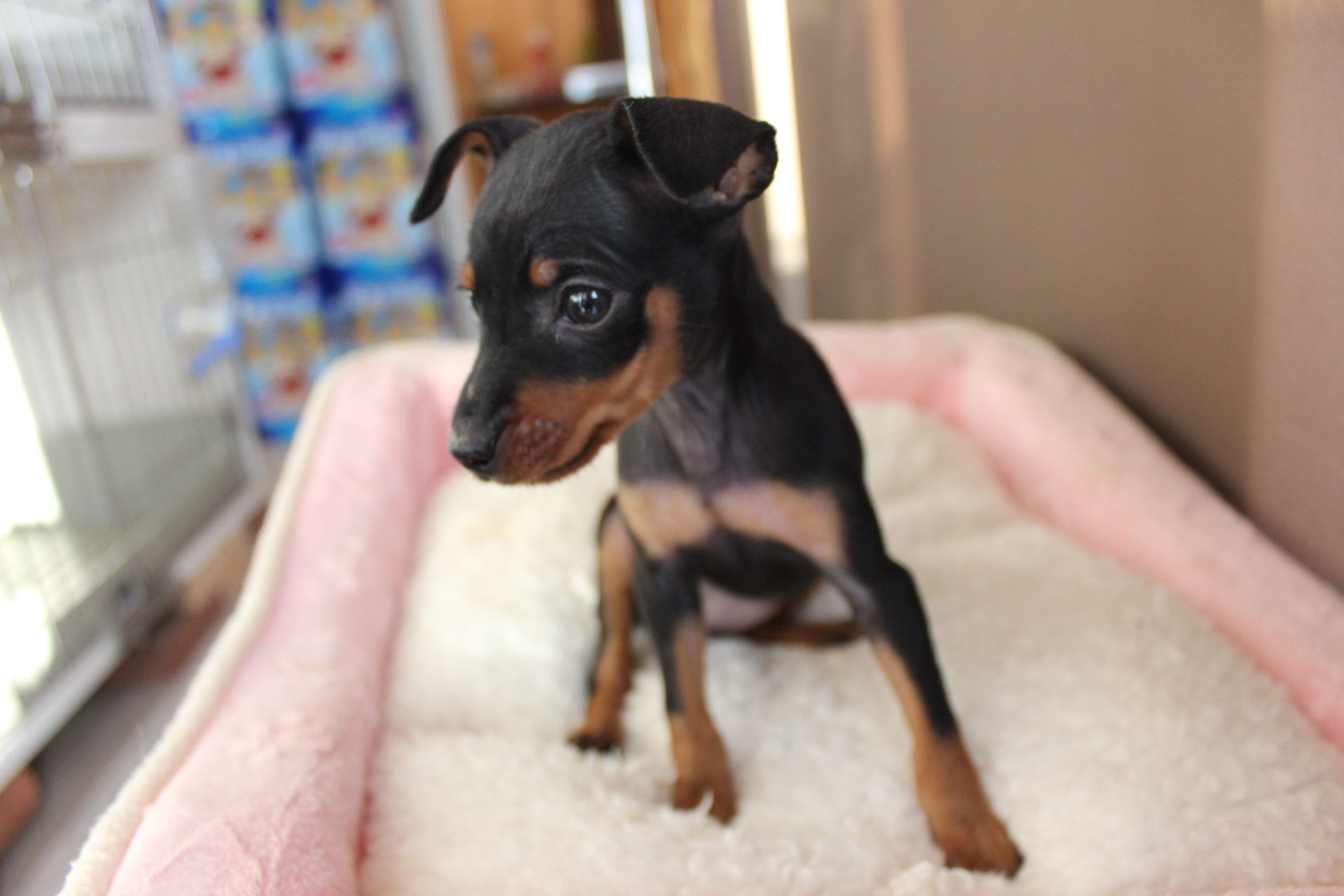 ミニチュアピンシャー、ブラック&タンの男の子♪