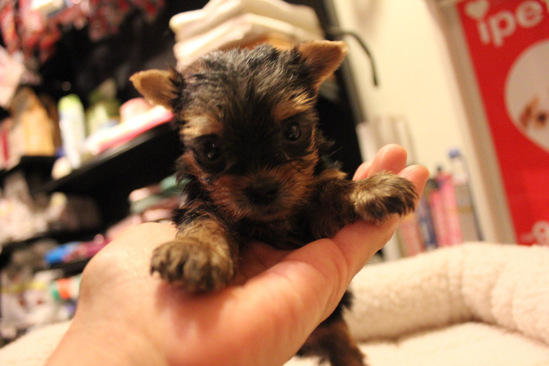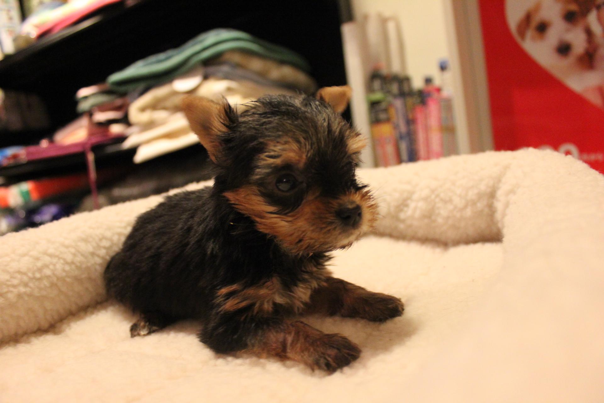 2014/05/08生まれ、ヨークシャーテリアの女の子になります。カラーは、スティールブルー&タンになります。ちっちゃな可愛い女の子です。6種混合ワクチン料金別途6,500円になります。生涯大切にしてくださる新しいご家族のお迎えをお待ちいたしております。