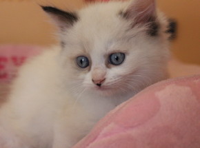 2016/04/20生まれ、ラグドール女の子になります。カラーはシールポイントバイカラーになります。生体価格他、消費税、3種混合ワクチン料金6,500円がかかります。生涯大切にしてくださる新しいご家族のお迎えお待ちしてます。
